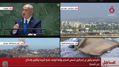 ولفت الباحث بالشأن الإسرائيلي إلى أن تضاريس وجه نتنياهو أثناء الخطاب توحي بعدم الرضا، مؤكدًا أن إسرائيل اليوم أصبحت معزولة إلى حد ما من قبل الشارع بكافة أنحاء العالم بما فيه الشارع الأمريكي يرفض تصريحات نتنياهو، بجانب أن الإعلام الأمريكي له دور كبير في كشف أكاذيب نتنياهو، ولذلك يتضطر نتنياهو إلى المزيد من الكذب لأنه لا يجد حقائق يستند عليها في أحادثيه وهو قاتل آلاف كثيرة في قطاع غزة فضلًا عن أكثر من 2000 شهيد لبناني خلال ثلاثة أيام.