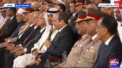 وقال الرئيس السيسي خلال حديثه: “أخي الحبيب الشيخ محمد بن زايد آل نهيان، اسمحلي أرحب بيك وأشكرك على أنك تكون موجود معانا النهاردة رغم المشاغل الكثيرة لفخامتك، لكن وجودك شرف كبير لينا، وكل الشكر”.