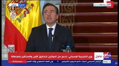 قال وزير الخارجية الإسباني خلال مؤتمر صحفي مع نظيره المصري، الدكتور بدر عبد العاطي: "مصر تمثل أهمية كبيرة لإسبانيا، وهذا ينعكس في تعاوننا من أجل التنمية".