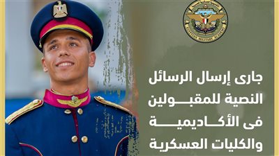 جدير بالذكر، أن نتيجة الأكاديمية العسكرية المصرية للعام الجاري 2025، تم إعلانها منذ أسبوع حيث تم ارسال رسائل التهنئة للطلاب المقبولين بالأكاديمية.