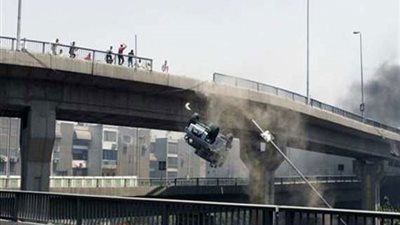اصطدام السيارة بالسور الحديدي على كوبري أكتوبر