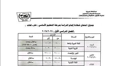 - جدول امتحانات الشهادة الاعدادية الجيزة