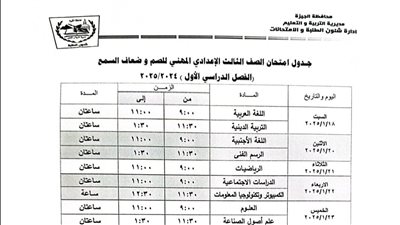 جدول امتحانات الشهادة الاعدادية الجيزة 2025