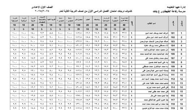 توزيع درجات الصف الأول الإعدادي 2025