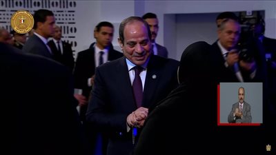 الرئيس السيسي يقبل رأس والدة الشهيد مجند عبدالرحمن محمد في احتفالات عيد الشرطة