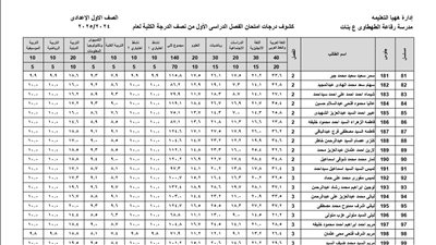 توزيع درجات الصف الأول الإعدادي الترم الأول 2025