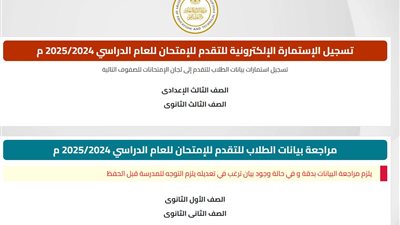 وأوضحت الوزارة أن المدارس ستستمر في استلام استمارة الثانوية العامة حتى يوم الخميس 27 فبراير، استعدادًا لبدء امتحانات الثانوية العامة في يونيو المقبل 2025.