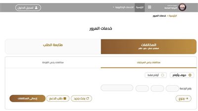 - إدخال رقم لوحة السيارة المراد البحث عن مخالفاتها.