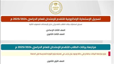 أعلنت وزارة التربية والتعليم والتعليم الفني عن بدء تسجيل استمارة الثانوية العامة يوم الأربعاء 15 يناير 2025، مع استمرار العملية حتى 20 فبراير الجاري.