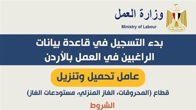 وظائف وزارة العمل 2025 .. أعلن وزير العمل محمد جبران اليوم الخميس عن توفر 300 فرصة عمل جديدة بإحدى شركات التجارة العامة والمقاولات في إحدى الدول العربية، حيث تسعى الشركة لاستقدام 300 عامل مصري في تخصصات مختلفة.