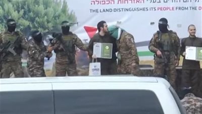 وخلال المراسم، قام أحد الأسرى بتقبيل رأس عنصر من كتائب القسام الذي كان يقف بجانبه، وبعد احتفال الحضور، بادر بتقبيل رأس مقاوم آخر.