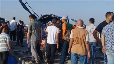 الإطار الأمامي انفجر، مصرع وإصابة 12 شخص في تصادم ميكروباص بحاجز خرساني بجمصة