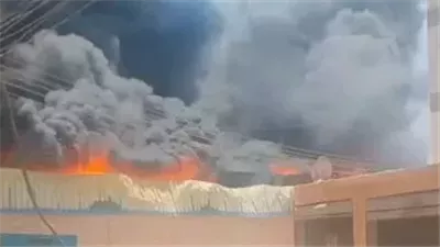 سبب حريق البدرشين اليوم، 10 سيارات إطفاء تحاول إخماد النار بمخزن أجهزة كهربائية