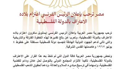 مصر ترحب بإعلان فرنسا الاعتراف بدولة فلسطينية: خطوة فارقة وتاريخية