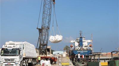 أول عملية من نوعها بميناء دمياط، شحن 750 طنًا من سماد اليوريا عبر النيل (صور)
