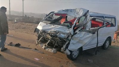 بالأسماء، إصابة 17 شابًا وفتاة في حادث انقلاب ميكروباص بطريق الصعيد الصحراوي الغربي