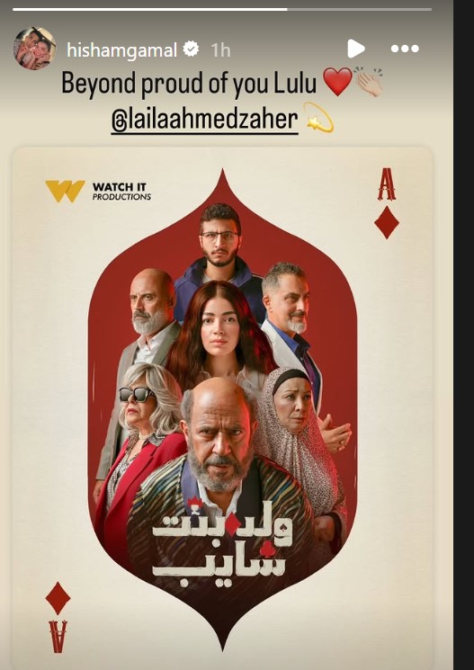 دعم الفنان هشام جمال زوجته الفنانة ليلى أحمد زاهر، في أحدث عمل فني لها وهو مسلسل ولد وبنت وشايب، بعد أن تم الكشف عن البوستر الرسمي للمسلسل عبر الصفحة الرسمية لمنصة watch it الرقمية.