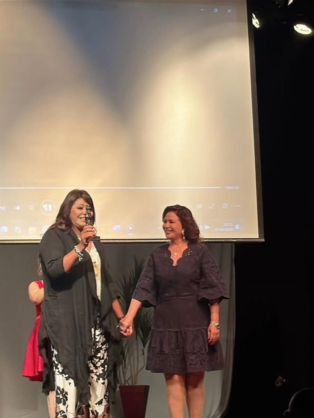 وحرصت إلهام شاهين على تقديم التهنئة لصديقتها هالة صدقي، على التكريم، بمجموعة من الصور التي جمعتهما في الحفل.