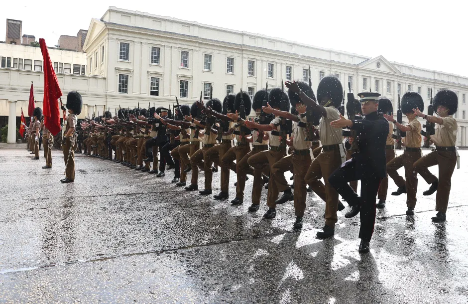 أقيمت أمس بروفات في ثكنات ويلينغتون في لندن لحرس الشرف احتفالا بوصول الرئيس الأمريكي.