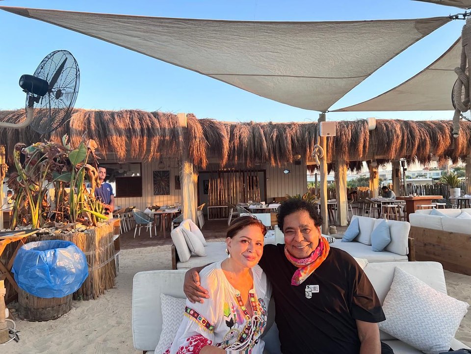 وظهرت إلهام شاهين برفقة محمد منير في لحظات عفوية ولقطات مميزة على شاطئ البحر.