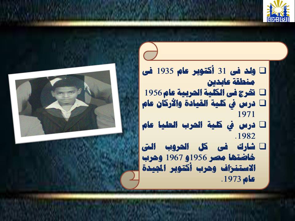 وجاء في الإنفوجراف أن المشير طنطاوي ولد في 31 أكتوبر 1935 بمنطقة عابدين، وتخرج من الكلية الحربية عام 1956، ثم درس في كلية القيادة والأركان عام 1971 وكلية الحرب العليا عام 1982.