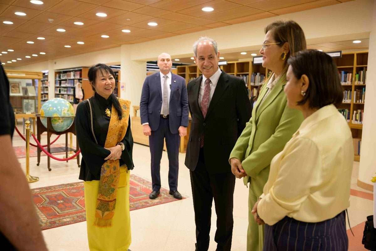 خلال الزيارة، أجرى الوفد جولة في مكتبة الكتب النادرة والمجموعات الخاصة، حيث زاروا معرض بعنوان "التنقيب في المكتبة: معرض لطلاب الفنون بالجامعة الأمريكية بالقاهرة في الممارسات التنظيمية"، ويسلّط هذا المعرض الضوء على إبداع طلاب الجامعة في إعادة تنظيم مقتنيات الجامعة الأرشيفية من خلال أساليب تنظيمية مبتكرة.
