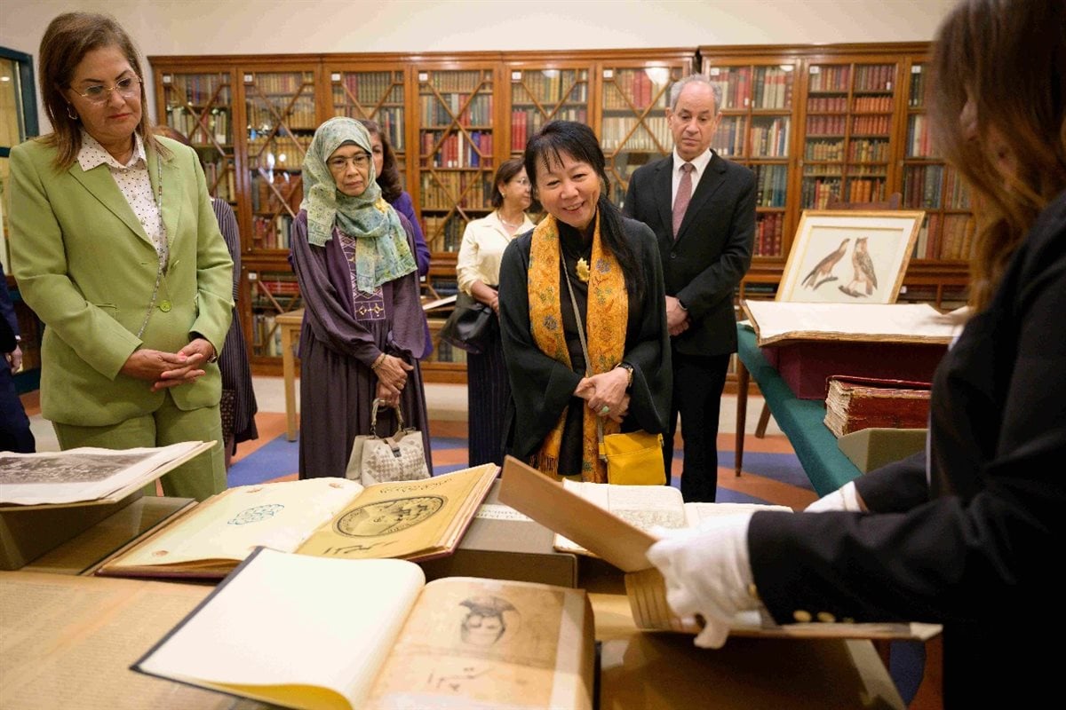 كما أجرى الوفد جولة في قاعة كريزويل التي تضم مجموعة متميزة من المخطوطات العربية والكتب النادرة والمجلات التاريخية والخرائط والمواد الأرشيفية، إذ تعكس هذه المجموعات - التي توثّق الآثار والمواقع التاريخية في جميع أنحاء مصر - دور الجامعة الأمريكية بالقاهرة في احتضان المعرفة والتراث الثقافي، والحفاظ على الكنوز التي تخدم الأنشطة الأكاديمية والجمهور بصفة عامة.