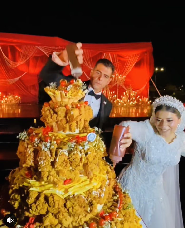 تورتة الفرايد تشيكن في فرح بنت هبة قطب حديث السوشيال ميديا