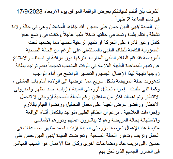 القاضي تقدم ببلاغ عاجل للنائب العام اتهم فيه إدارة المستشفى بالإهمال الجسيم والقتل العمد بالإهمال، مؤكدًا أن ما حدث يمثل «فضيحة طبية» بكل المقاييس، تستوجب التحقيق العاجل ومحاسبة كل مسؤول شارك في هذه الكارثة التي هزت الشارع بمنطقة وسيط البلد.