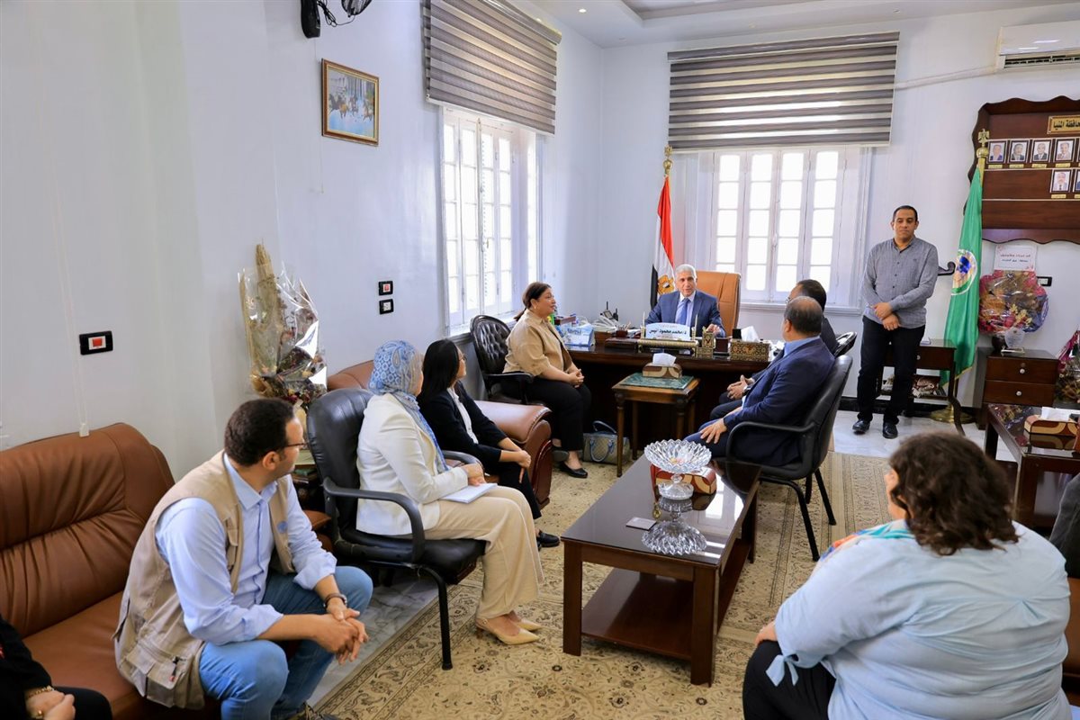 وكان في استقبالها محمد أنيس، السكرتير العام للمحافظة، بمقر ديوان عام محافظة المنيا، وذلك بحضور جاكلين بينات، ممثلة منظمة الفاو في مصر، ومحمد يعقوب، مساعد ممثل الفاو، وكريستن نبيل، مسئول البرامج والمشروعات بمكتب نائبة وزيرة التضامن الاجتماعي وعضوة اللجنة التيسيرية لمشروع الفاو، وعماد إسماعيل، مدير المشروع، وعبد الحميد الطحاوي، وكيل وزارة التضامن الاجتماعي، ومحمد الأمين، وكيل وزارة الزراعة، بالإضافة إلى فريق عمل المشروع.