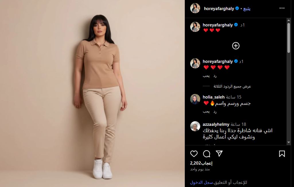 وقد لاقت صور حورية فرغلي تفاعلًا كبيرًا من متابعيها، إذ انهالت عليها التعليقات الإيجابية والداعمة، متمنين أن تكون الصور واقعية، وليست معدّلة عبر الفوتوشوب ، أو باستخدام تقنيات الذكاء الاصطناعي، وذلك بعد سنوات طويلة من المعاناة والتنقل بين العمليات داخل مصر وخارجها.