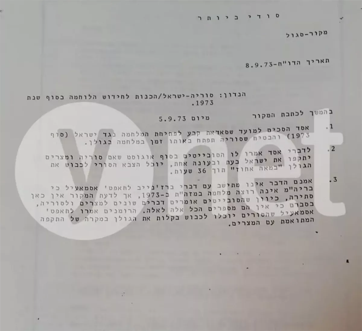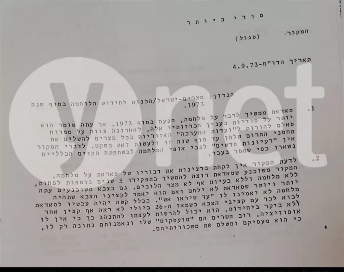 كشفت صحيفة يديعوت أحرنوت العبرية، عن وثائق جديدة بشأن أشرف مروان، إذ كتبت على متن صحيفتها " لهم عيون ولا يبصرون، وآذان لهم ولا يسمعون"، إذ يُظهر تحقيق يديعوت أحرنوت "حول أشرف مروان "ملاك الأكاذيب"، الذي خدع إسرائيل عشية حرب يوم الغفران، من خلال تشكيل إخفاقات استخباراتية وتشكيل تصور، مثل تلك التي أدت إلى كارثة أكتوبر بعد 50 عامًا، وذلك على حد تعبيرها ووصفها.