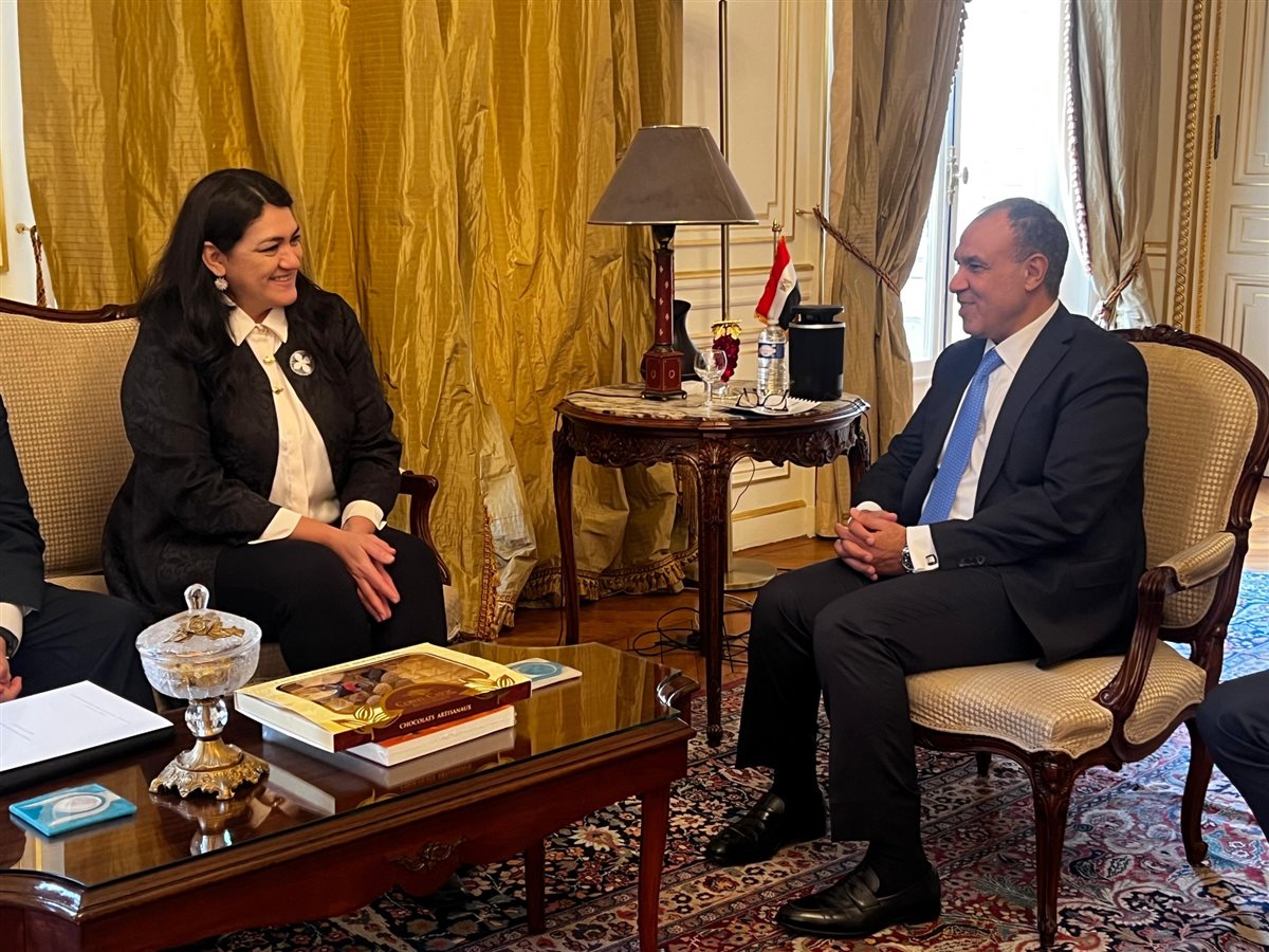 وزير الخارجية يلتقي بمندوبة باراجواي الدائمة لدى اليونسكو لدعم ترشيخ خالد العناني