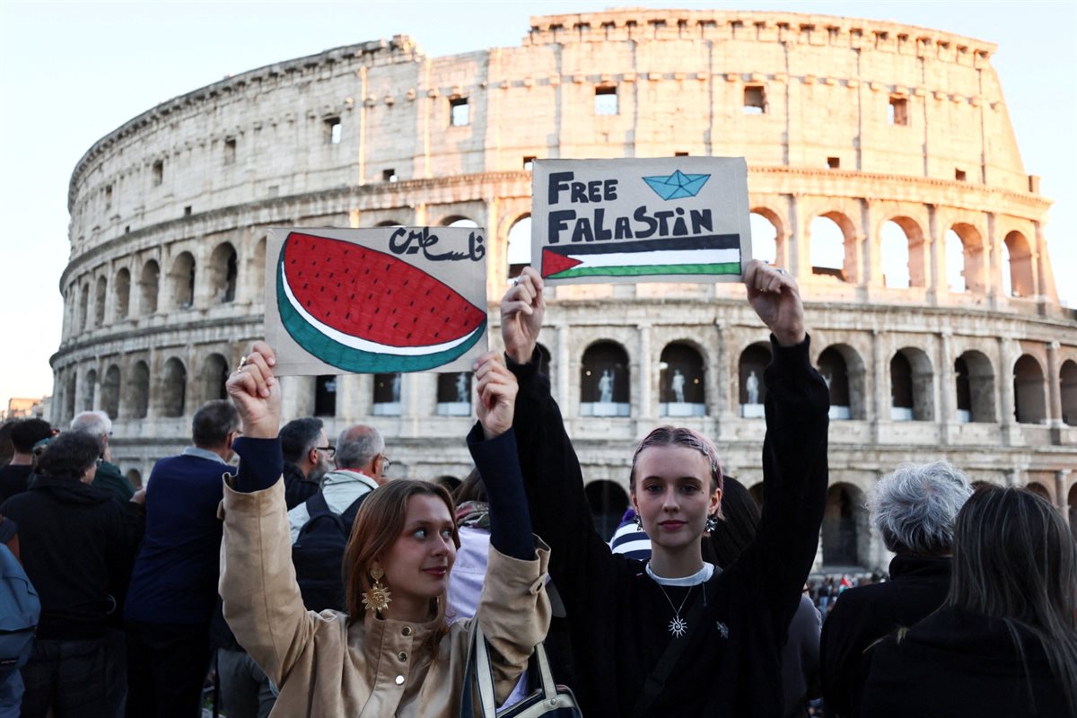 شهدت العاصمة الإيطالية روما، تظاهرات واسعة دعمًا لسكان غزة، واحتجاجًا على اعتراض إسرائيل لأسطول الصمود العالمي الذي حاول إيصال المساعدات للفلسطينيين في القطاع يوم الجمعة 3 أكتوبر من العام الجاري 2025، إذ تظاهر أكثر من 2 مليون شخص في أنحاء إيطاليا دعمًا لسكان غزة، وذلك ضمن مسيرات تجولت في أكثر من 100 مدينة، وسط تصاعد الضغوط على حكومة جورجيا ميلوني لدفعها إلى الاعتراف بالدولة الفلسطينية، على غرار عدد من الدول الأوروبية.