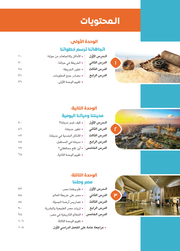 يشتمل كتاب الدراسات الاجتماعية للصف الرابع الابتدائي 2026 على 3 وحدات دراسية، ويأتي المنهج كالتالي: