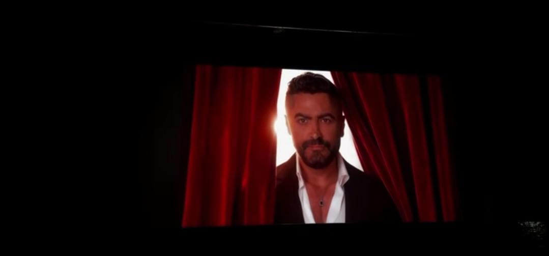 وبعد أن انتهى عرض الفيديو كليب، صعد تامر حسني على المسرح، واستقبله الحضور بالتصفيق والهتاف له شكراً لما قدمه.