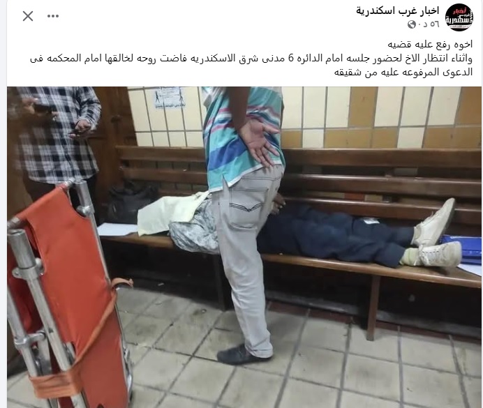 تداول نشطاء على مواقع التواصل الاجتماعي، صورة لرجل في الأربعينيات من عمره، فاضت روحه في المحكمة أثناء انتظار قضية رفعها عليه شقيقه.