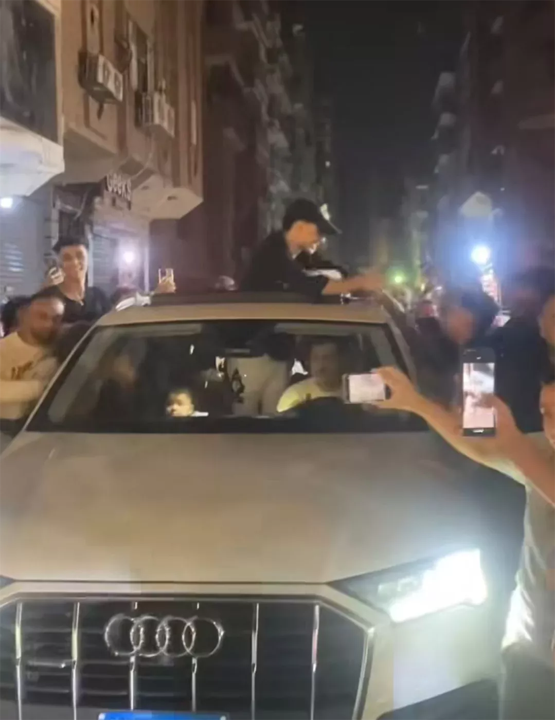 وحظي سامر المدني مطرب المهرجانات باستقبال احتفالي من أصدقائه الذين نظموا له زفة بالسيارات والدراجات النارية بمناسبة عودته.