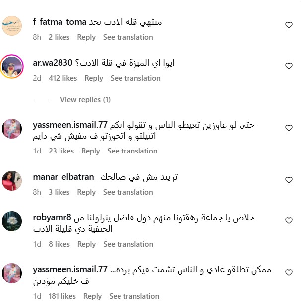 “عمري ماشفت ناس مافيهاش قبول بالمنظر ده وكملو قله قبولهم تحركاتهم وحركاتها اللي تقرف”