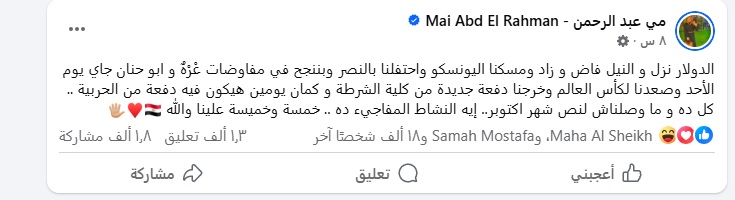 هذا التزامن بين النجاح الاقتصادي والاستقرار المؤسسي (تخريج دفعات الشرطة والحربية)، والإنجاز الدبلوماسي، والثقافي، والرياضي، خلال الأسبوع الأول من الشهر الذي يحمل ذكرى نصر أكتوبر العظيم، يضاعف الشعور بالزخم الإيجابي والوحدة الوطنية.