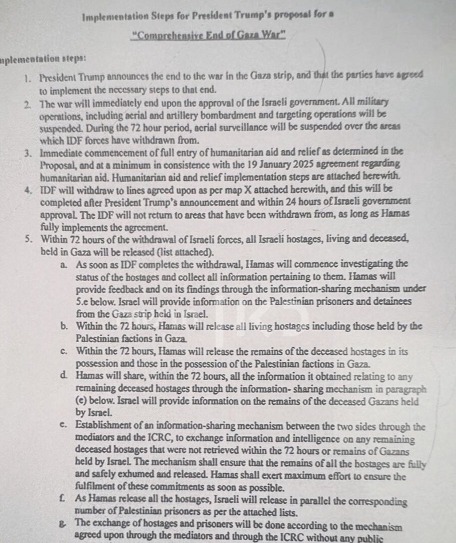 ننشر تفاصيل خطوات تنفيذ الوثيقة التي تم التوقيع عليها بين حماس وإسرائيل كما نشرتها صحف أمريكية وإسرائيلية.
