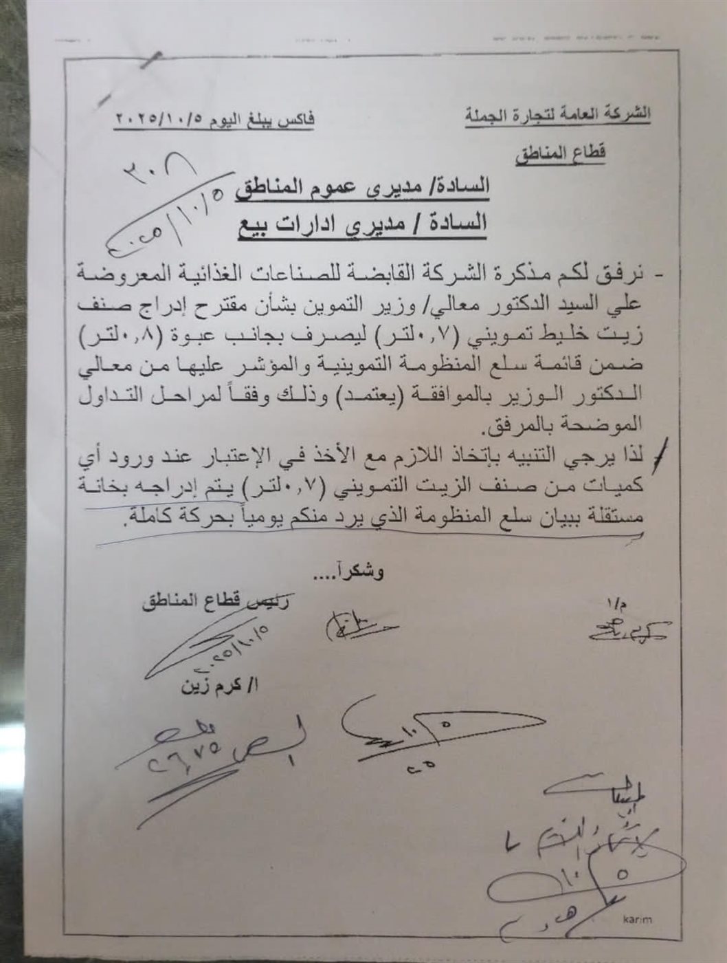 ووجهت الشركة العامة لتجارة الجملة تعليماتها إلى مديري عموم المناطق ومديري إدارات البيع بإدراج العبوة الجديدة في تقارير حركة السلع اليومية، على أن يتم تسجيلها في خانة مستقلة داخل بيان سلع المنظومة التموينية، بما يضمن وضوح عمليات الصرف ودقة التوثيق.