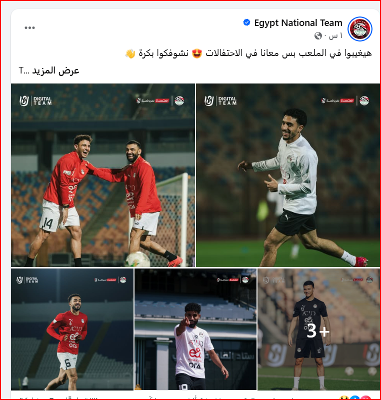 نشر الحساب الرسمي لمنتخب مصر، صور نجوم الفريق الغائبين للإصابة وهم: عمر مرموش - ومحمد شحاتة ومحمد عبد المنعم ونبيل عماد دونجا، إلى جانب اللاعبين الذين يغيبون عن تشكيلة الفراعنة غدا للإيقاف مثل حمدي فتحي ومروان عطية، إلى جانب محمد صلاح الذي يغيب عن مباراة الغد للراحة السلبية بقرار من الجهاز الفني بقيادة حسام حسن
