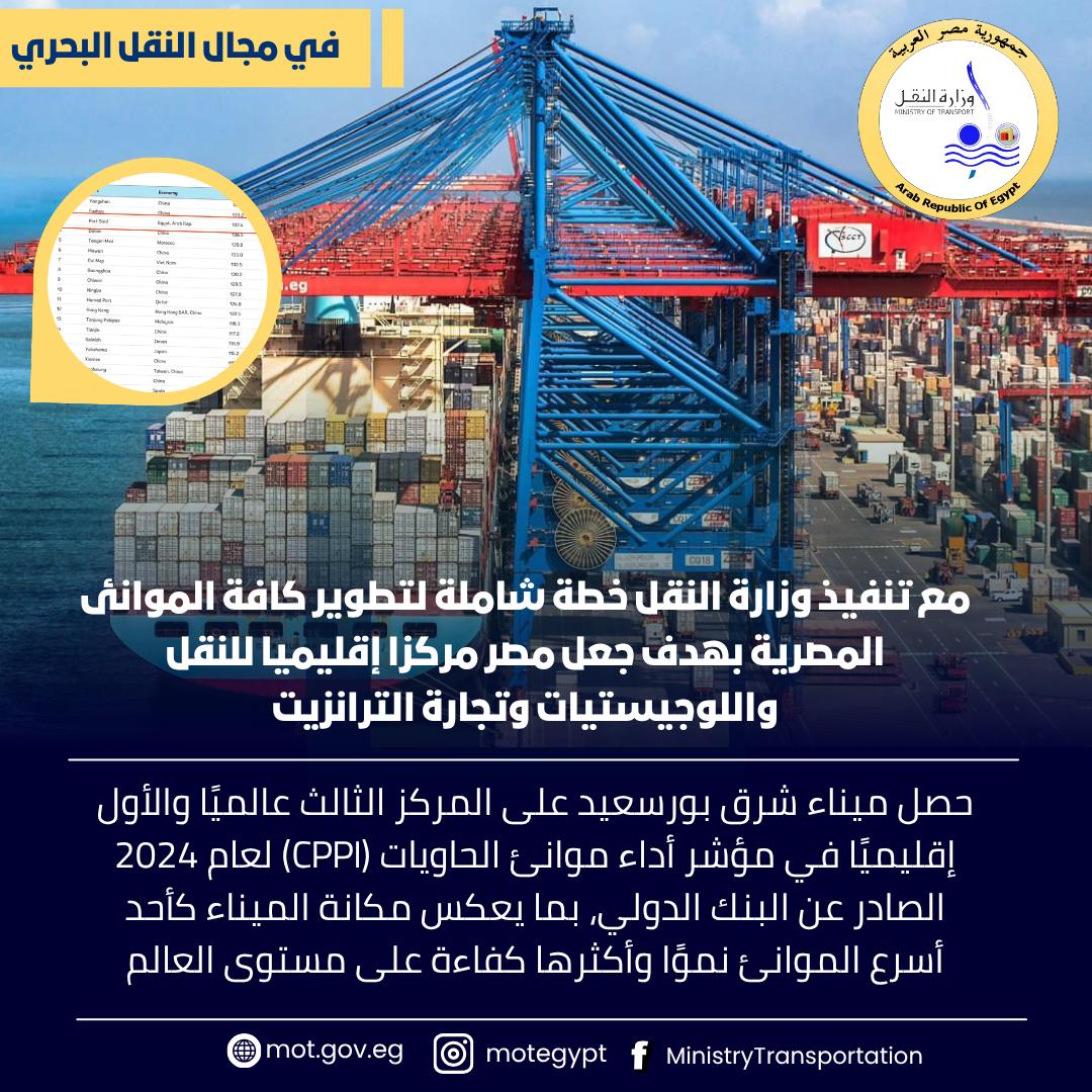 وبحسب تقرير البنك الدولي لعام 2024، حصل ميناء شرق بورسعيد على المركز الثالث عالميًا والأول إقليميًا في مؤشر أداء موانئ الحاويات (CPPI)، ما يؤكد مكانته كأحد أسرع الموانئ نموًا وأكثرها كفاءة في العالم.