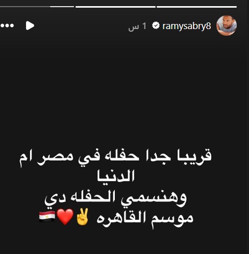 وشارك رامي صبري متابعيه عبر حسابه الرسمي على موقع التواصل الإجتماعي وتبادل الصور، إنستجرام منشورًا، وكتب نصًا: قريباً حفلة في مصر أم الدنيا، وهنسمي الحفلة دي موسم القاهرة".