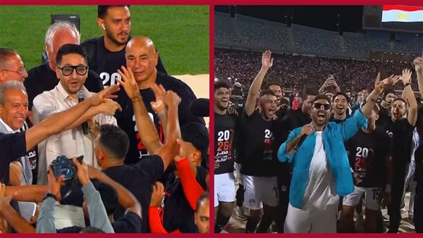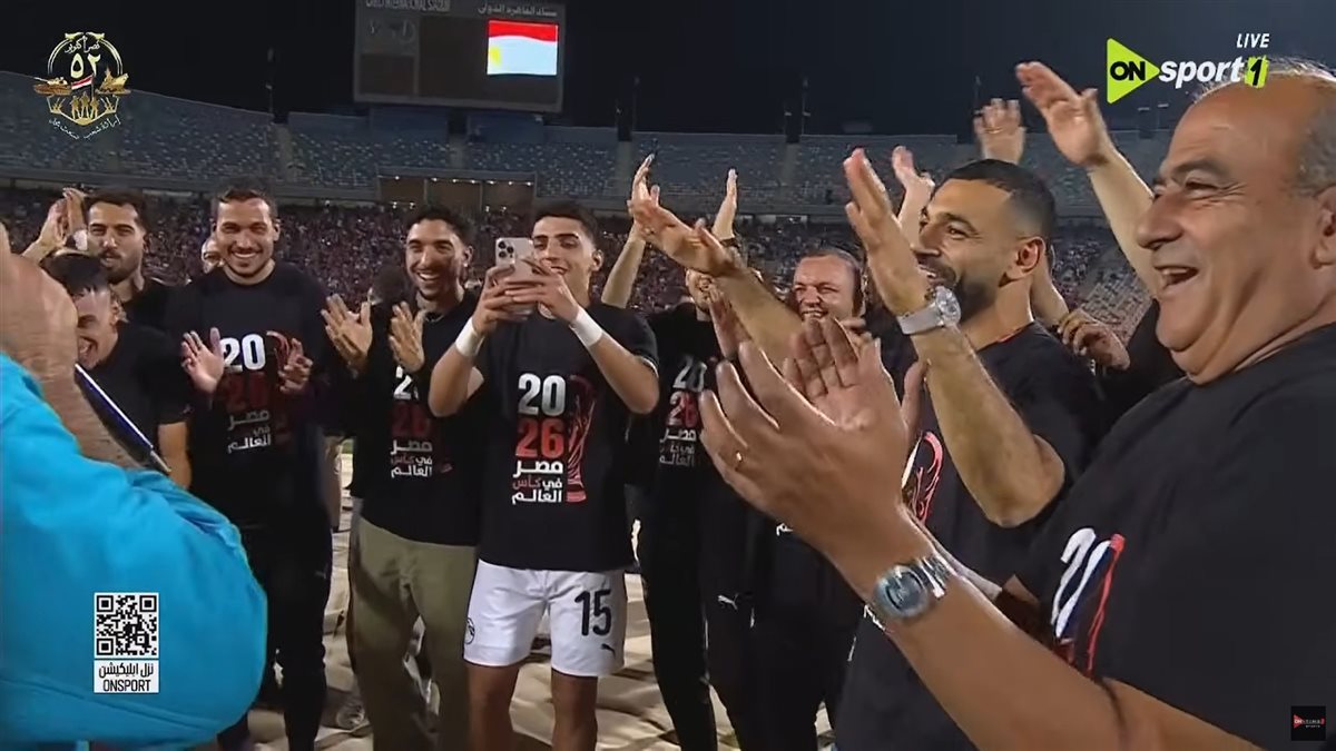 انطلقت الاحتفالات في استاد القاهرة بتأهل منتخب مصر لكأس العالم 2026، بارتداء لاعبى المنتخل الوطني والجهاز الفني بقيادة حسام حسن قمصان خاصة احتفالا بالتأهل لنهائيات كأس العالم 2026.