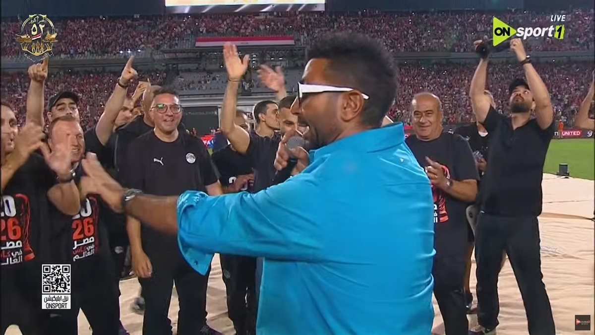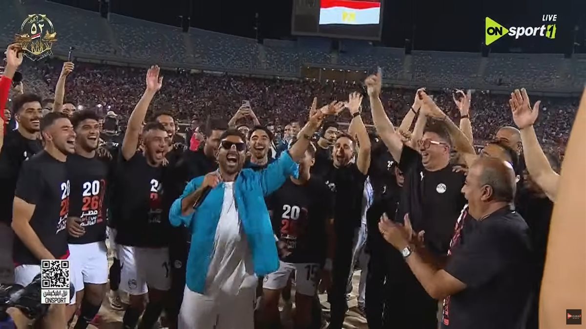 ثم بدأت الفقرات الفنية بأغنية خاصة للفنان حمادة هلال، بعد تصدر المنتخب المجموعة الأولى والذى أنهى مشواره بالفوز على غينيا بيساو، بهدف دون رد في اللقاء الذي جمع المنتخبين، مساء، الأحد، في إطار منافسات الجولة العاشرة والأخيرة من التصفيات الأفريقية المؤهلة لكأس العالم 2026.
