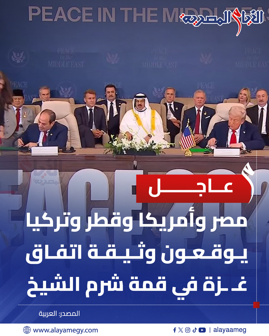 قمة شرم الشيخ للسلام 2025، شهدت قمة شرم الشيخ للسلام، اليوم الإثنين، توقيع وثيقة شاملة لإنهاء الحرب في قطاع غزة، وذلك خلال مراسم رسمية جمعت بين الرئيس عبد الفتاح السيسي، رئيس الجمهورية، والرئيس الأمريكي دونالد ترامب وعدد من قادة العالم المشاركين في القمة.