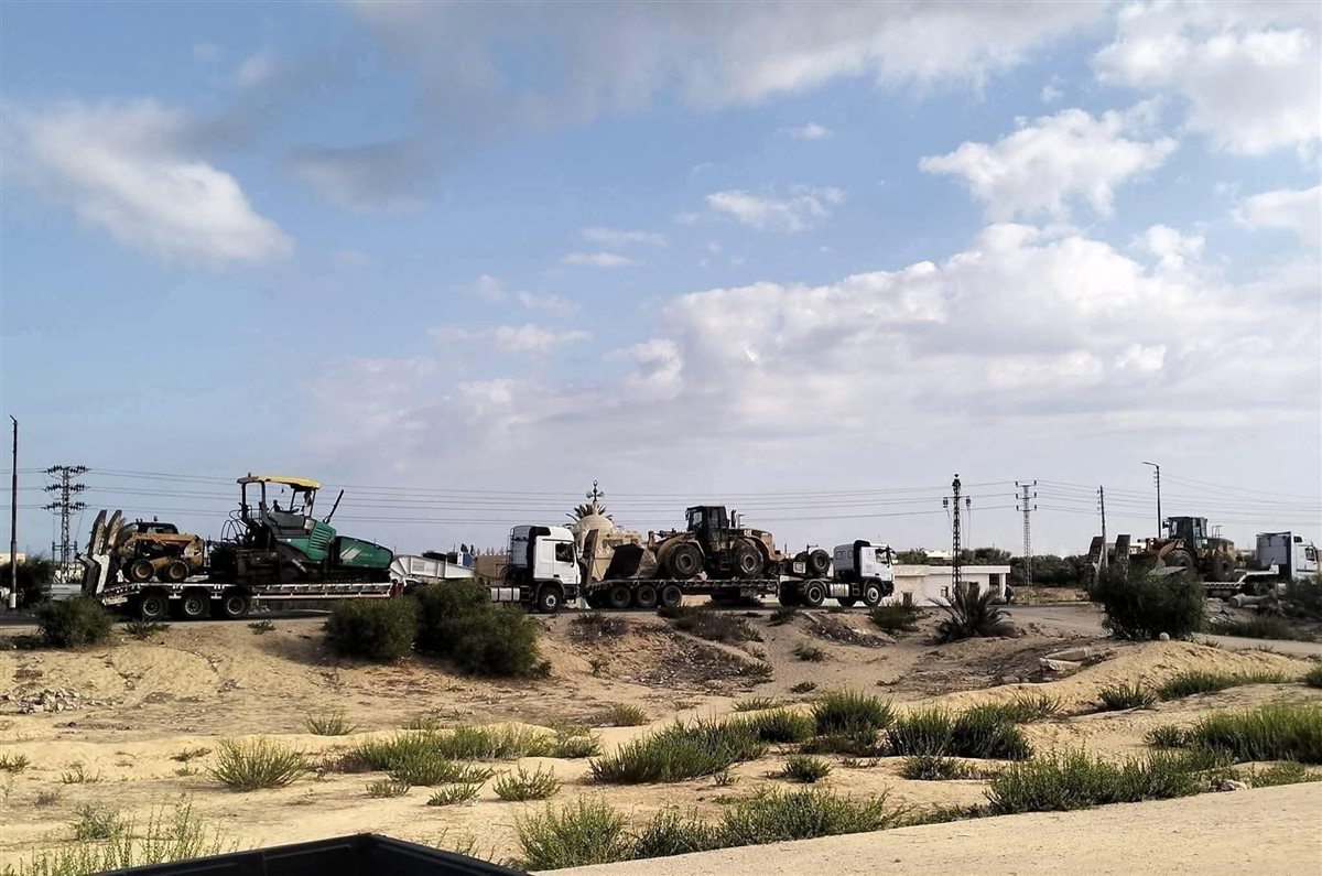 شاحنات مصرية ثقيلة تتحرك نحو غزة... ليبدأ الحديد مهمته في رفع الركام عن وجه الوجع، وفتح طريقٍ لحياةٍ جديدة وسط الرماد.