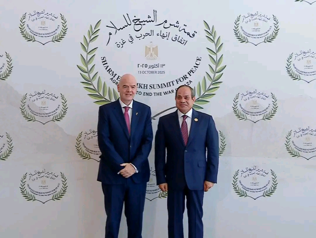 انضم رئيس الاتحاد الدولي لكرة القدم (فيفا) جياني إنفانتينو إلى أكثر من 20 من زعماء العالم والرؤساء والمسؤولين في قمة السلام التي عقدت في شرم الشيخ بمصر.